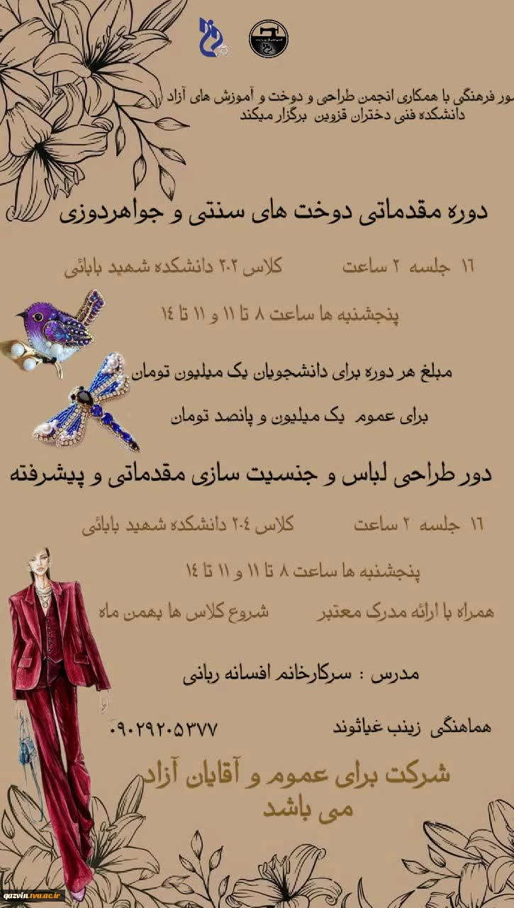 دوره مقدماتی دوخت های سنتی و جواهر دوزی 2