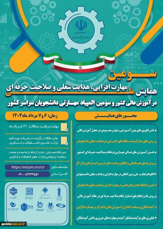 امتیاز دهید : سومین همایش ملی مهارت افزایی، هدایت شغلی و صلاحیت حرفهای در آموزش عالی کشور و المپیاد مهارتی دانشجویان سراسر کشور 2 سهشنبه 5 فروردین 1404 ساعت 11:34
